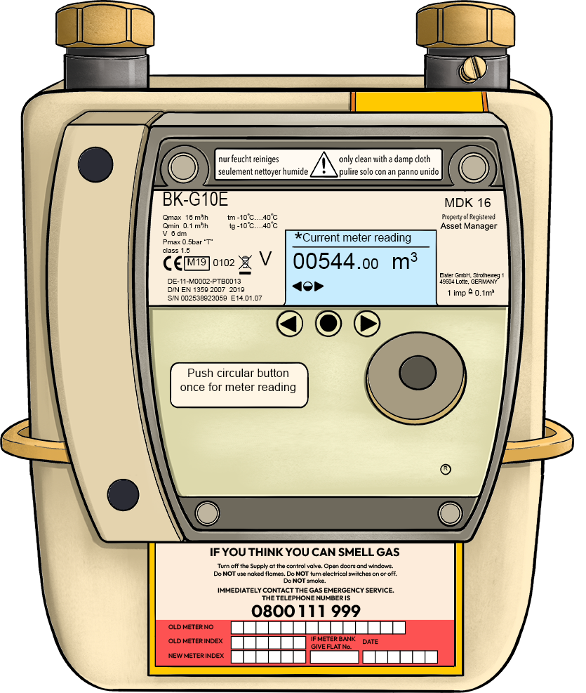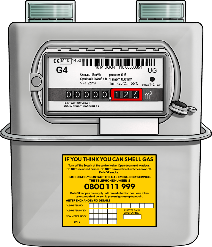 Example: If a meter shows 01234 567, your reading is 01234.